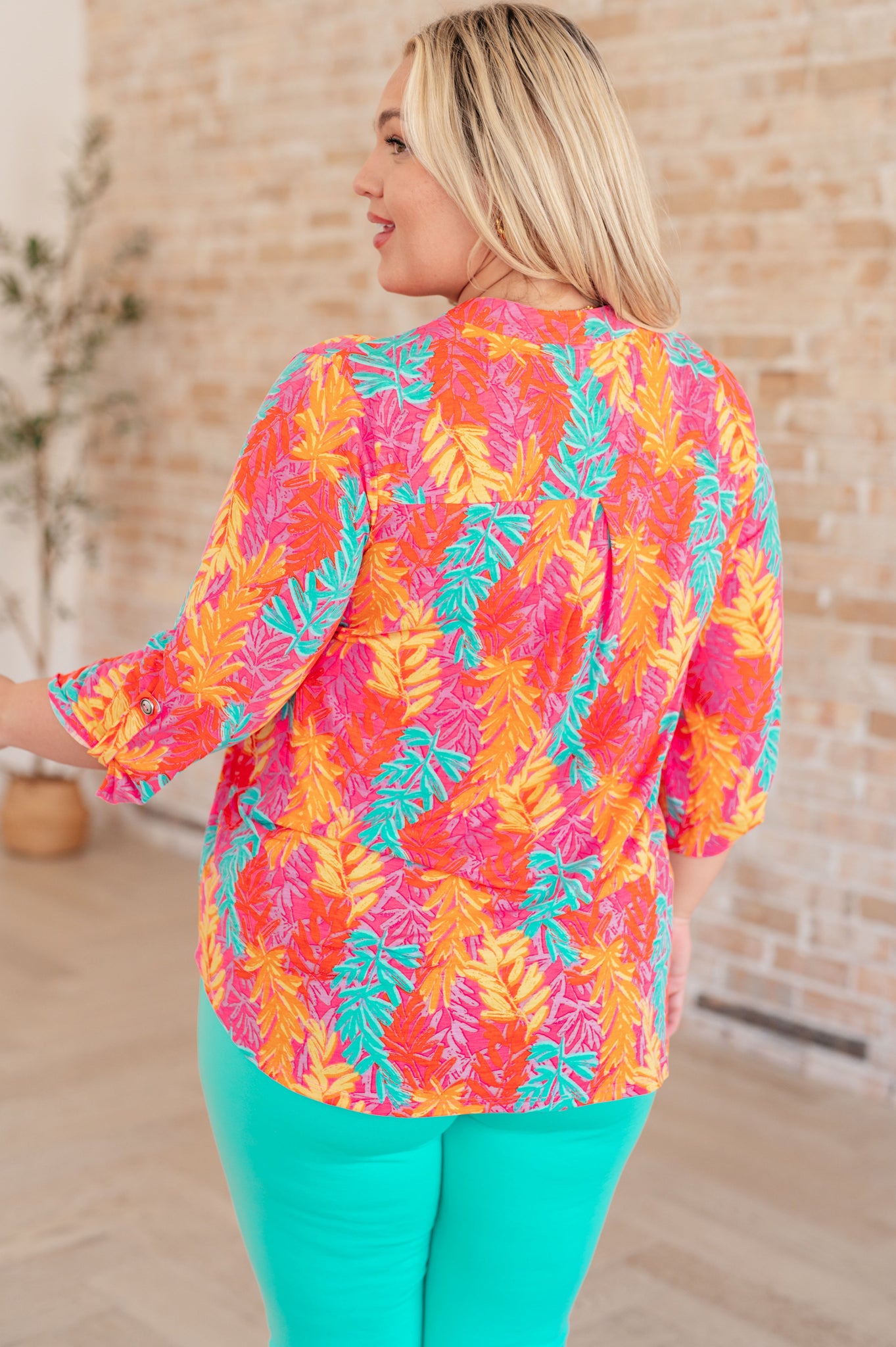 Transform your closet with the Lizzy Top. Made from Bulgari, this top features a v-neckline and rolled sleeves with button tabs for a comfortable, yet eye-catching piece. The 3/4 length sleeves and scoop hem add flow to the already stylish piece. Experience comfort and style in one with the Lizzy Top.