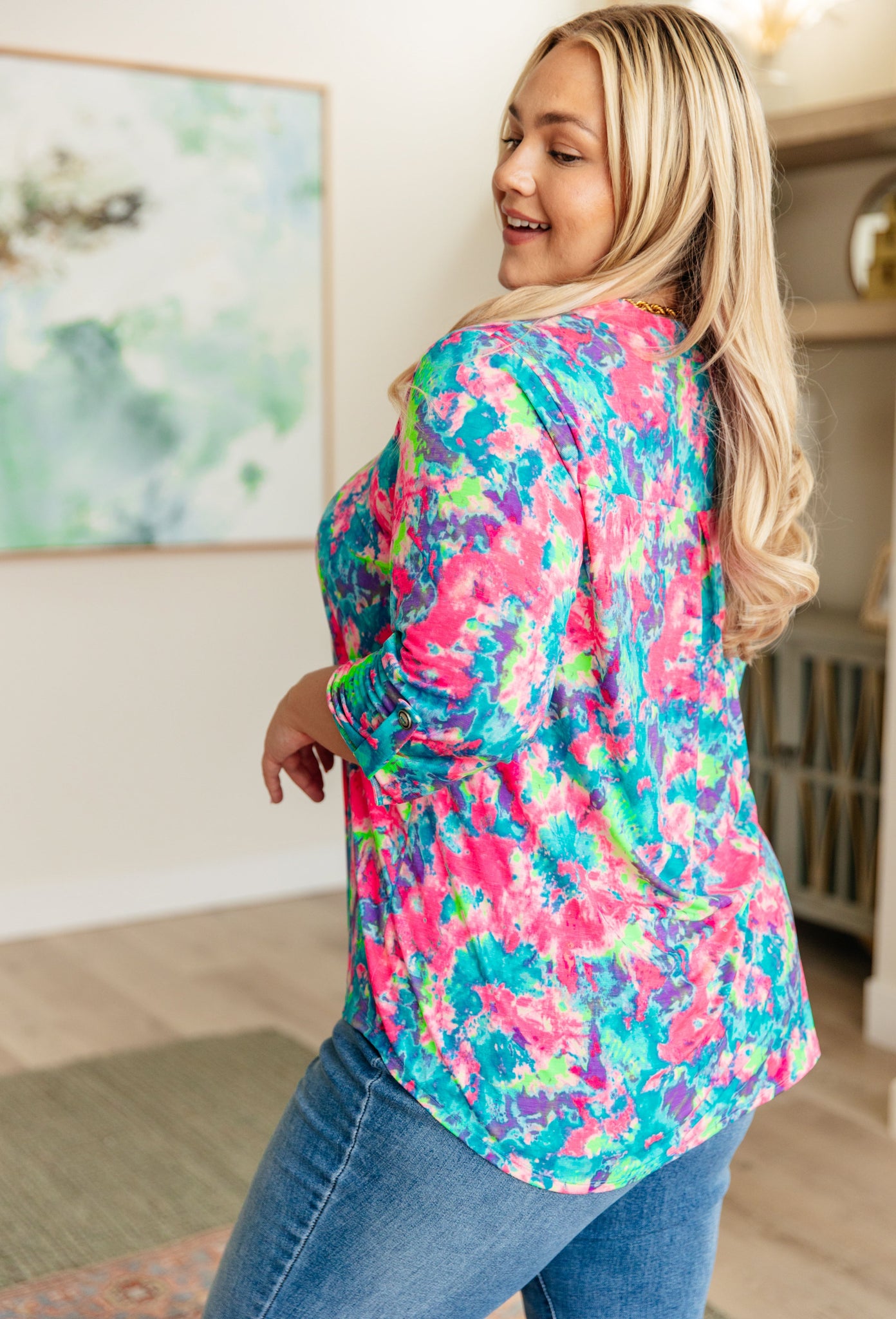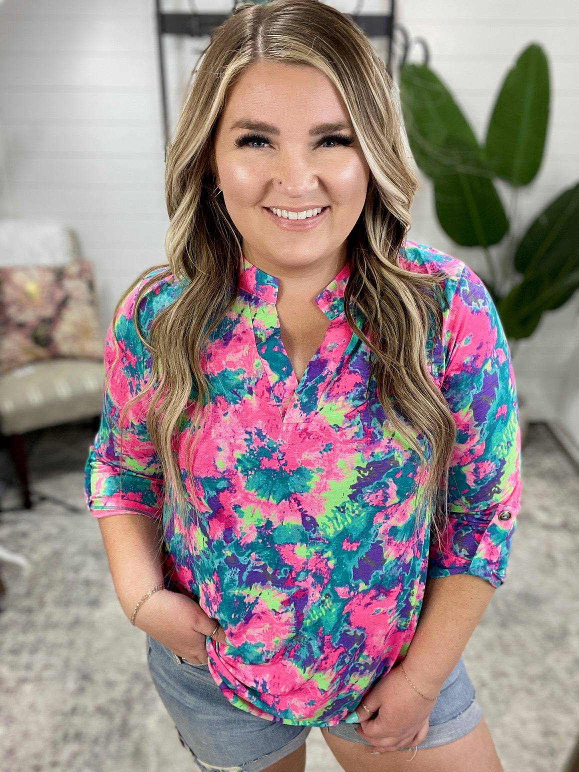 Transform your closet with the Lizzy Top. Made from Bulgari, this top features a gabby neckline and rolled sleeves with button tabs for a comfortable, yet eye-catching piece. The 3/4 sleeve and scoop hem add flow to the already stylish piece. Experience comfort and style in one with the Lizzy Top.