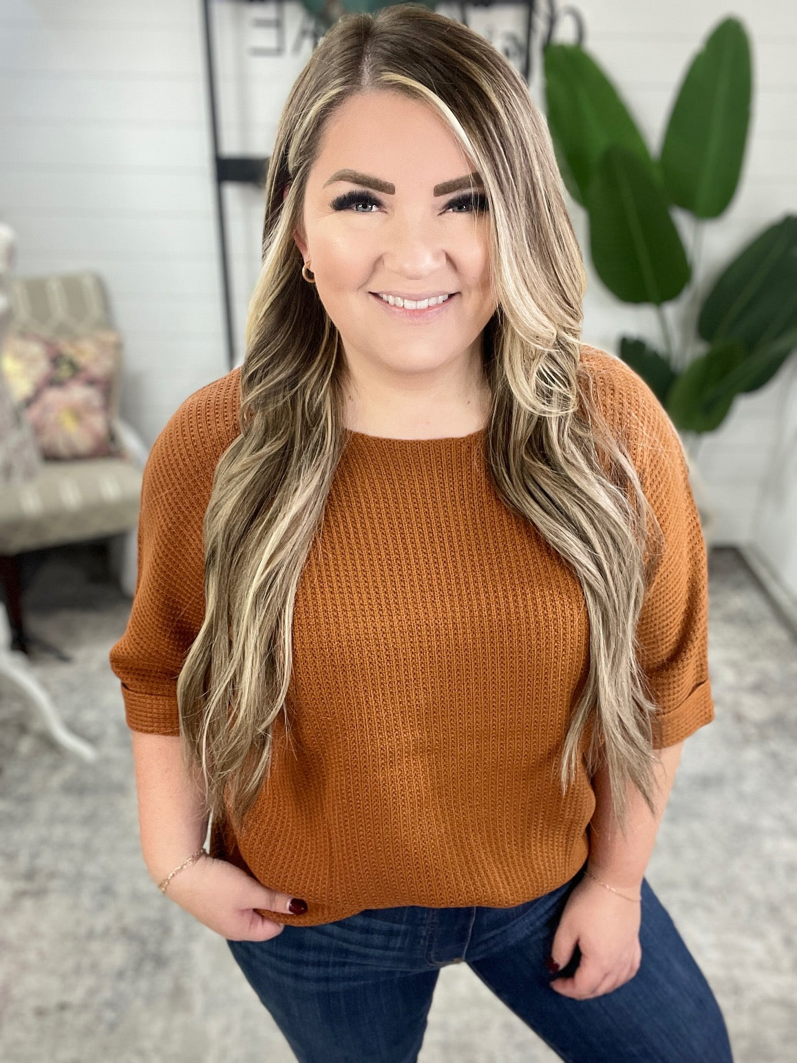 Lotta Love Knitted Sweater Top in Rust