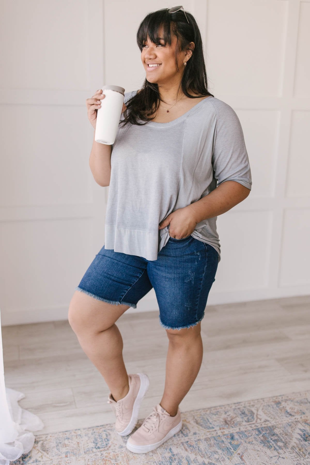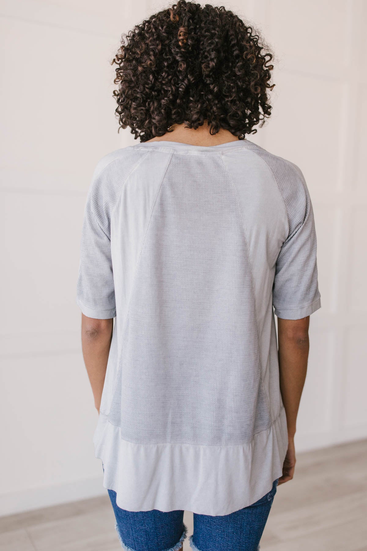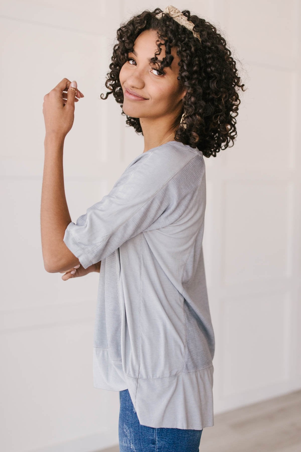 This slouchy 3/4 length sleeve tee is the perfect casual addition to your wardrobe. The mixed textures throughout the top give this the perfect boho vibe. Layer it over a bralette and a pair of shorts for a look you will feel confident to take on anything in.