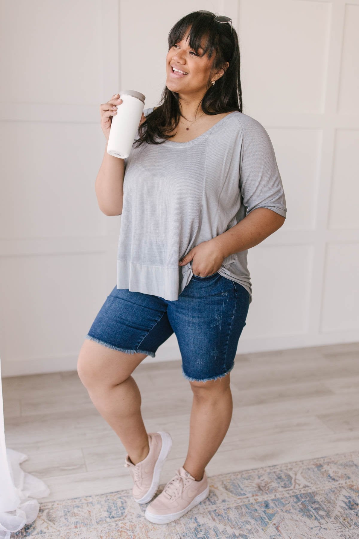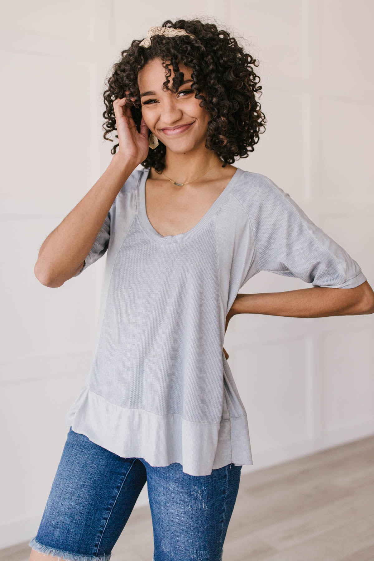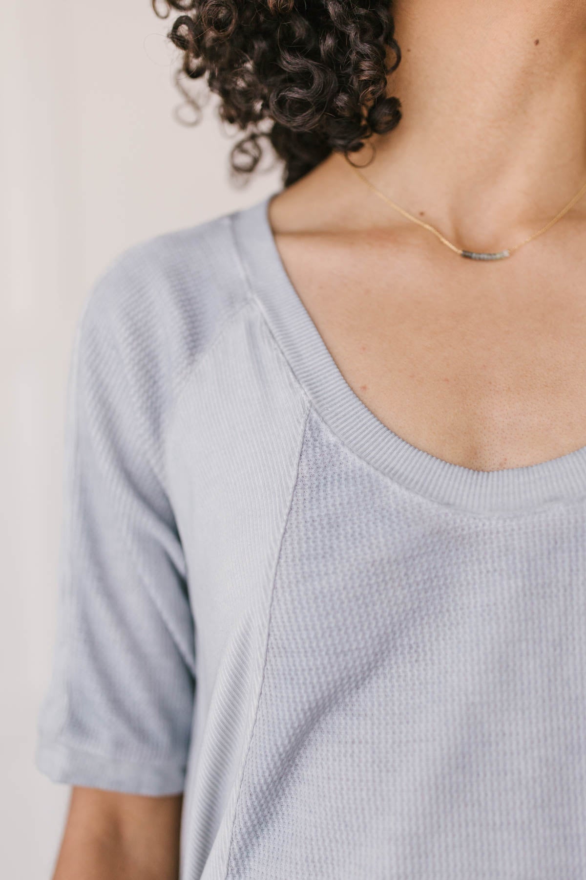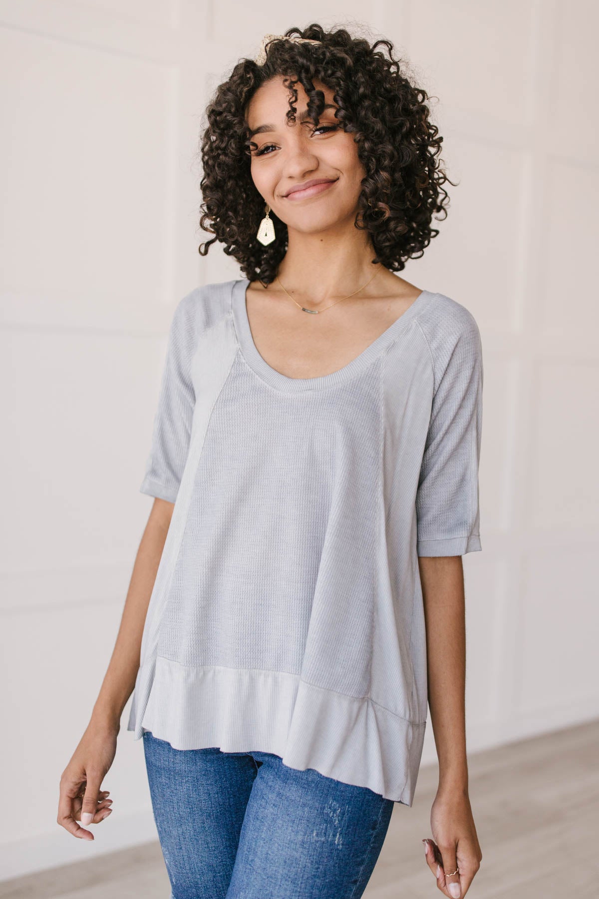 This slouchy 3/4 length sleeve tee is the perfect casual addition to your wardrobe. The mixed textures throughout the top give this the perfect boho vibe. Layer it over a bralette and a pair of shorts for a look you will feel confident to take on anything in.