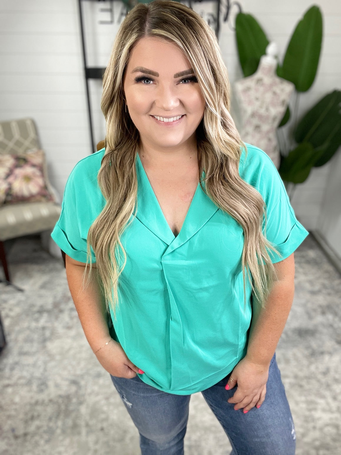 Welcome the warmer weather with the New and Noteworthy Top! Boasting a modern collar and dolman sleeves, this eye-catching top also includes a v-neckline and an easy, relaxed fit for all-day comfort. Its vibrant color adds a cheerful pop to your wardrobe. What are you waiting for?