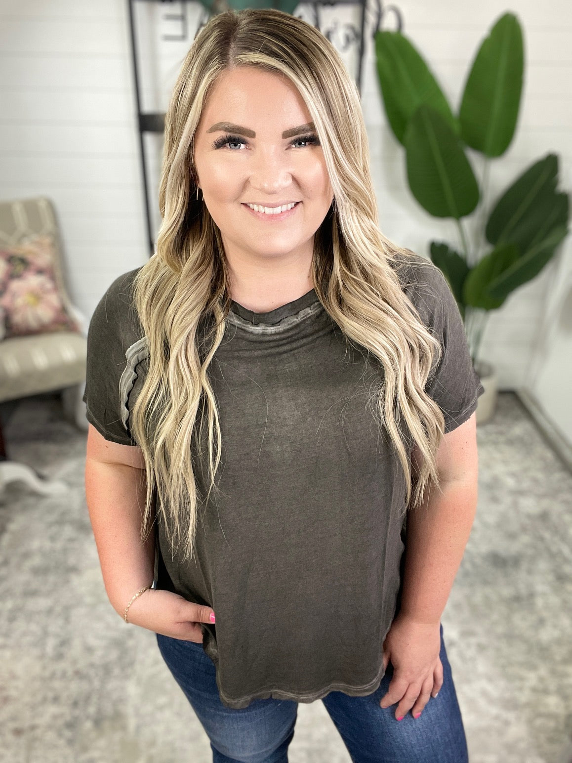 Discover a laid back casual look with our New Edition Mineral Wash T-Shirt! Crafted with lightweight jersey knit, finished with a mineral wash, and detailed with exposed seam work and raglan sleeves, this t-shirt offers a relaxed fit and style that will take your wardrobe to the next level.