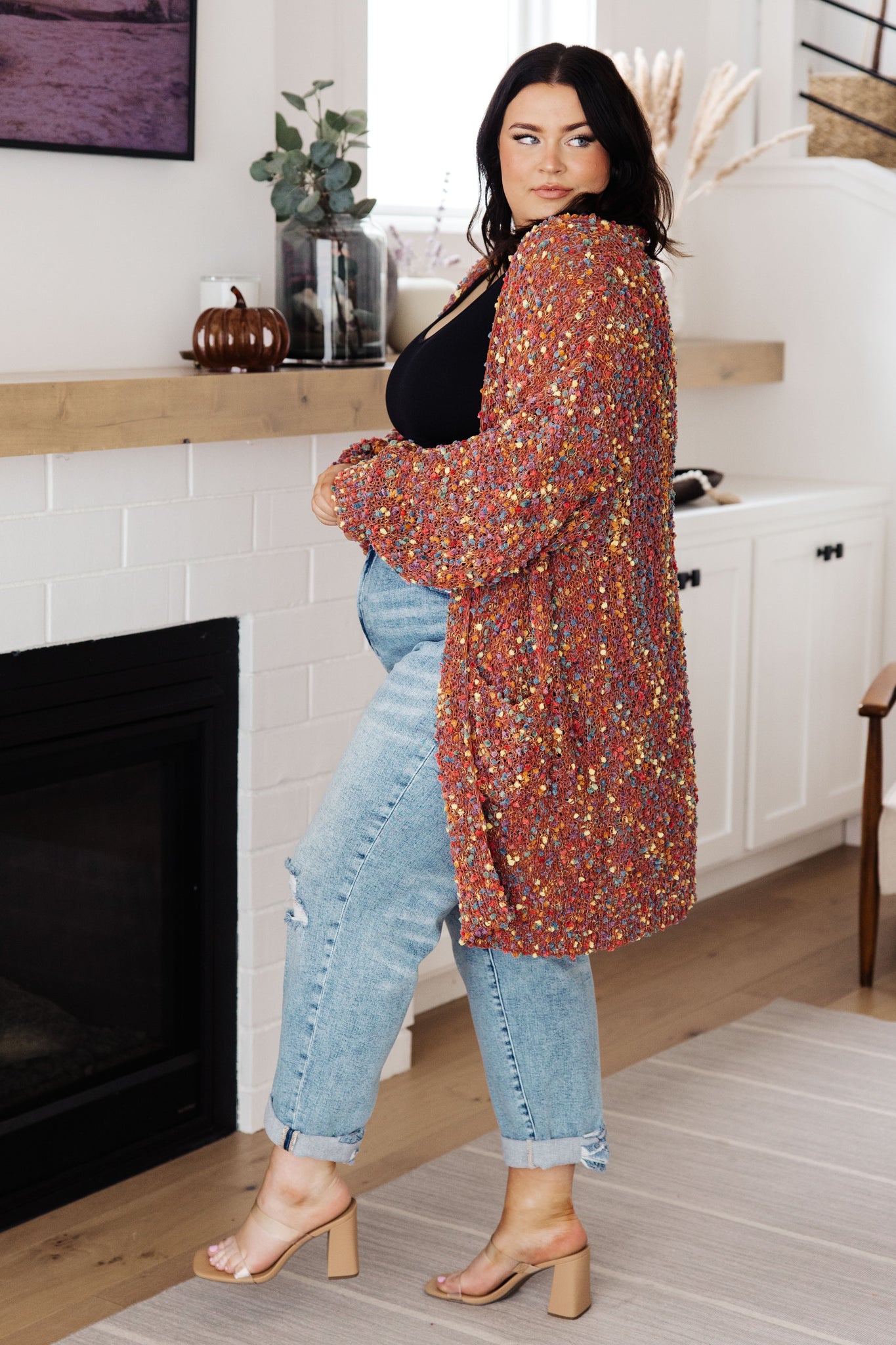 Experience the charm of our No Time Like The Present cardigan! Made from confetti chenille, this beautiful longline piece has an open front and pockets to keep you cozy and fabulous. You'll love the feeling of slipping into this dreamy garment. Embrace effortless style and look amazing no matter the day!