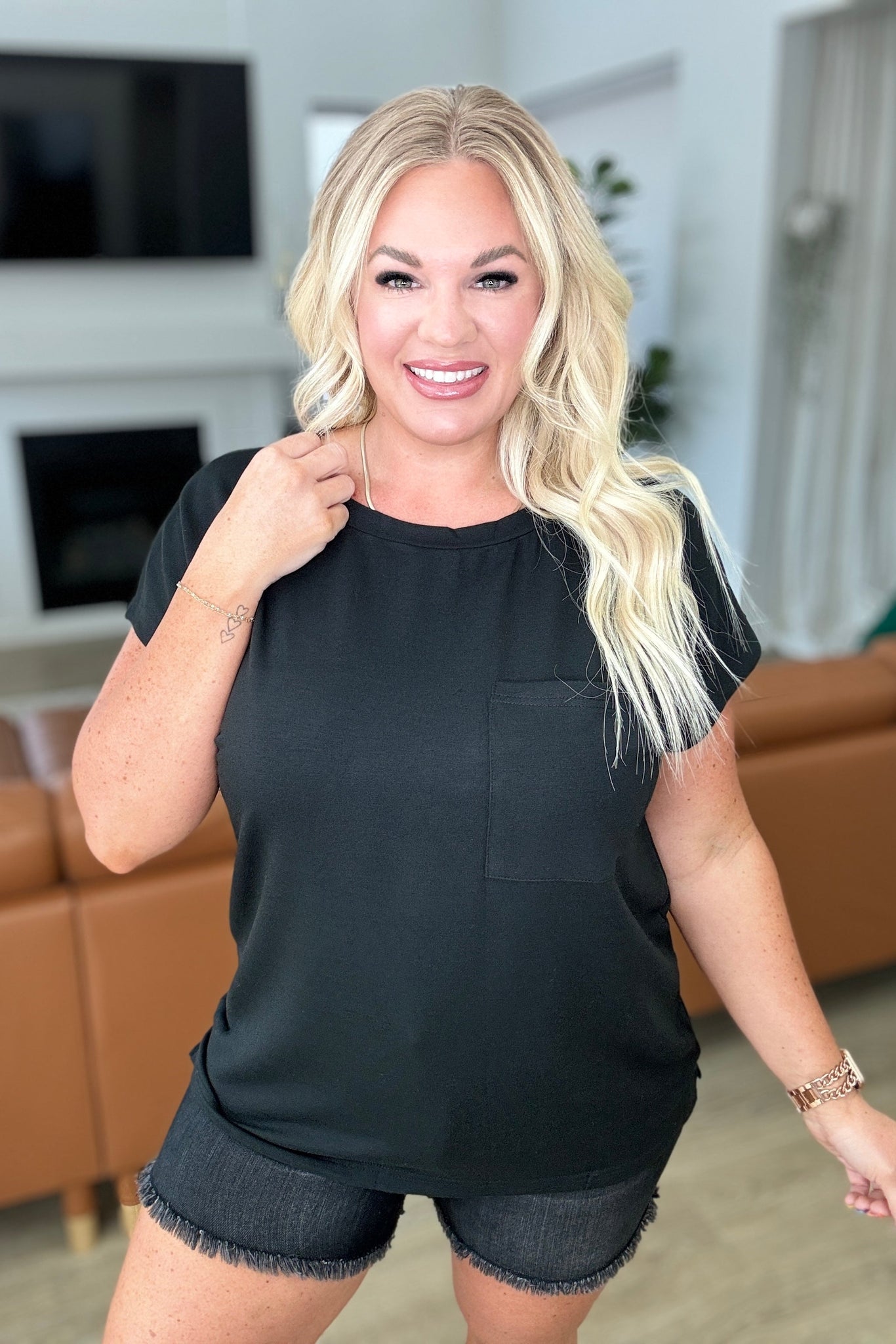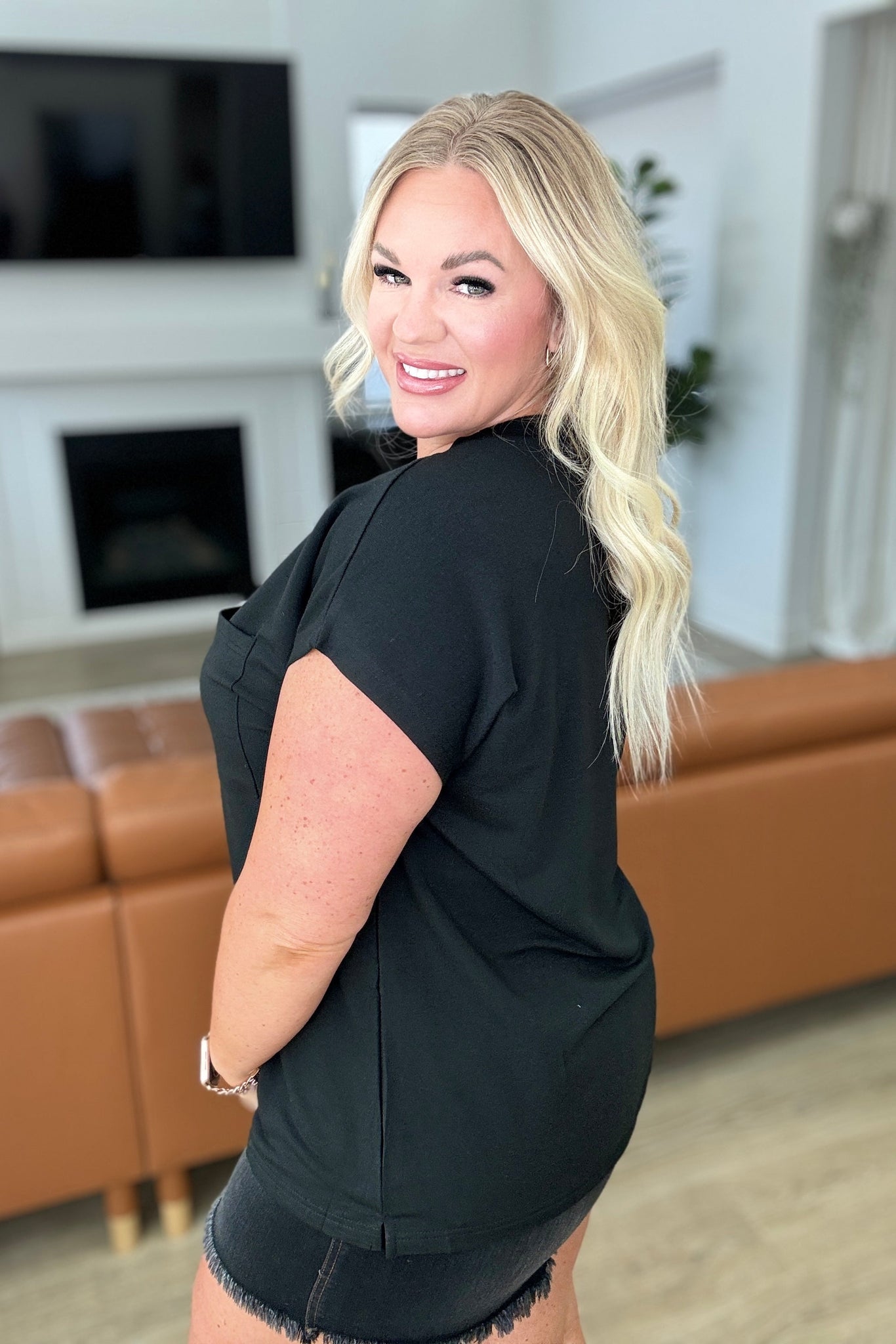 Add some flair to your wardrobe with our Not So Basic Pocket Tee! Made from French Terry with plenty of stretch, it features dolman sleeves, side slits, and a front pocket for extra style and comfort.