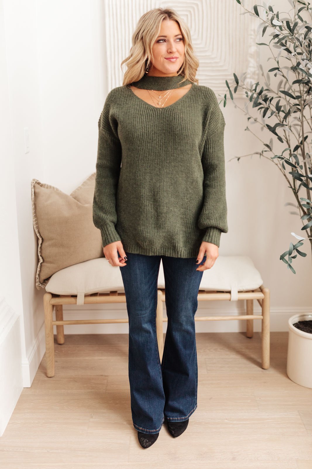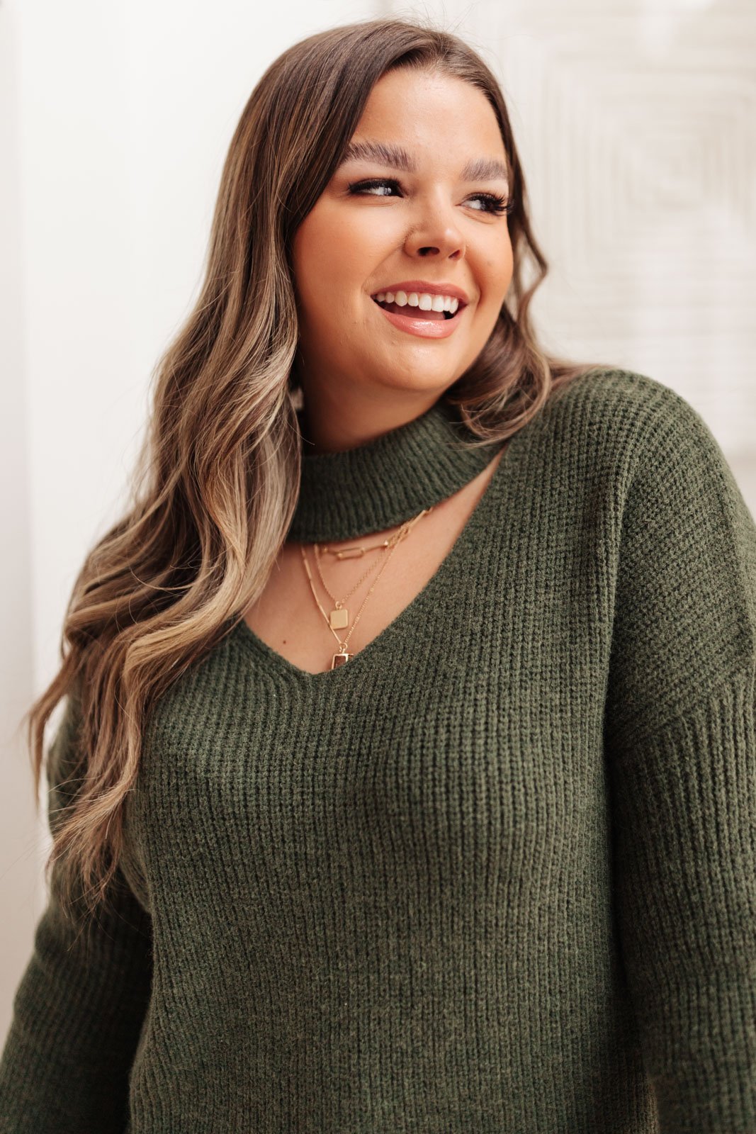 The Olive Branch Sweater is a v neck sweater-with a twist. This beautiful sweater is made from soft stretchy fabric in a stunning color! The cutout v neckline makes this sweater perfect for pairing with statement necklaces. Put together a cool and classy outfit by pairing this sweater with jeans, boots, and lots of jewelry!