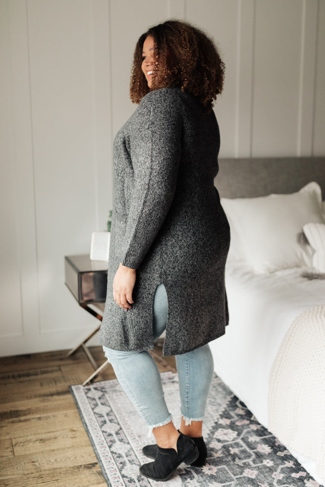 The One Of The Girls Cardi is what dreams are made of! Midi length with a drop shoulder, two front pockets, and a split hem detail beautifully shapes this open front, collarless cardigan. Perfect for throwing on over a long sleeve top and your fav denim. We promise it will be your new go to, that you reach for on repeat.