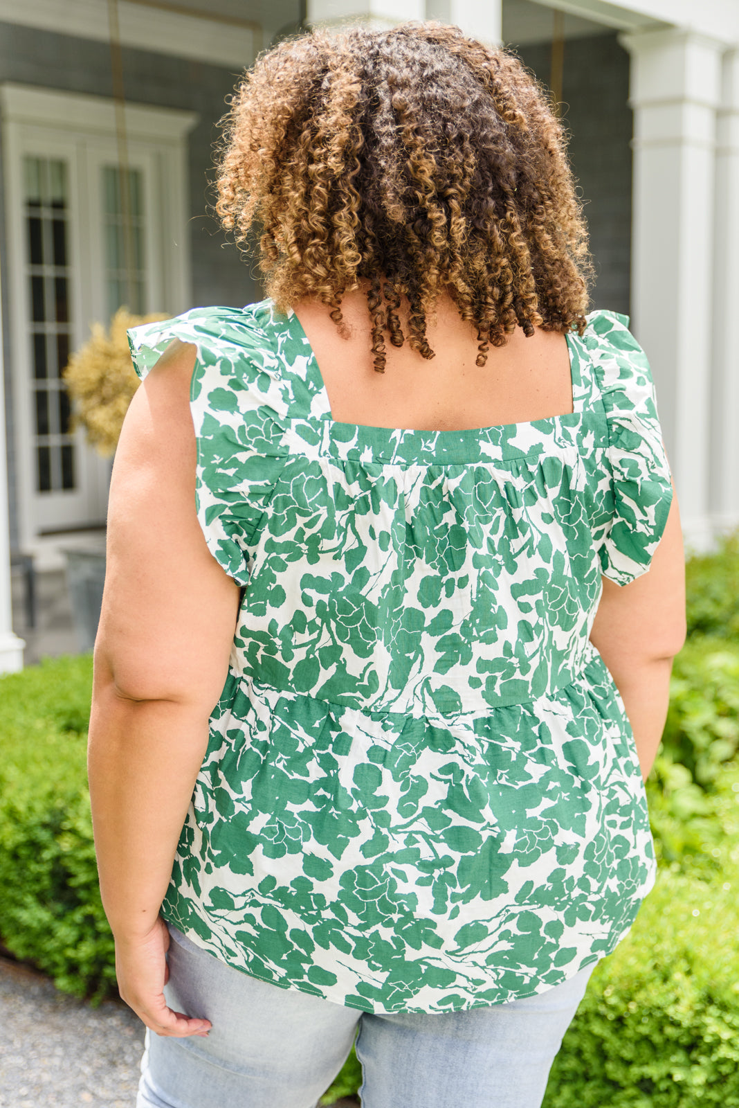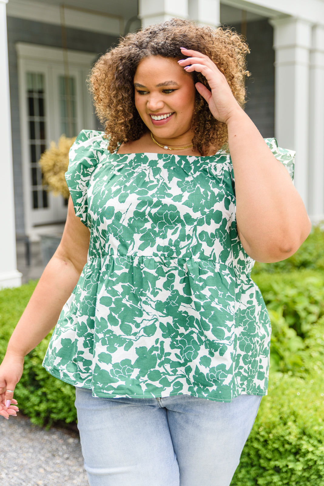 We are print obsessed! The Ooh La La Top is painted in a chic floral print in a beautiful shamrock green color! Not only is the print amazing, we also haven't stopped thinking about the beautiful details like the square neckline, ruffle sleeves and babydoll silhouette! Pair with your favorite jeans, and nude heels for a cute and stylish look!