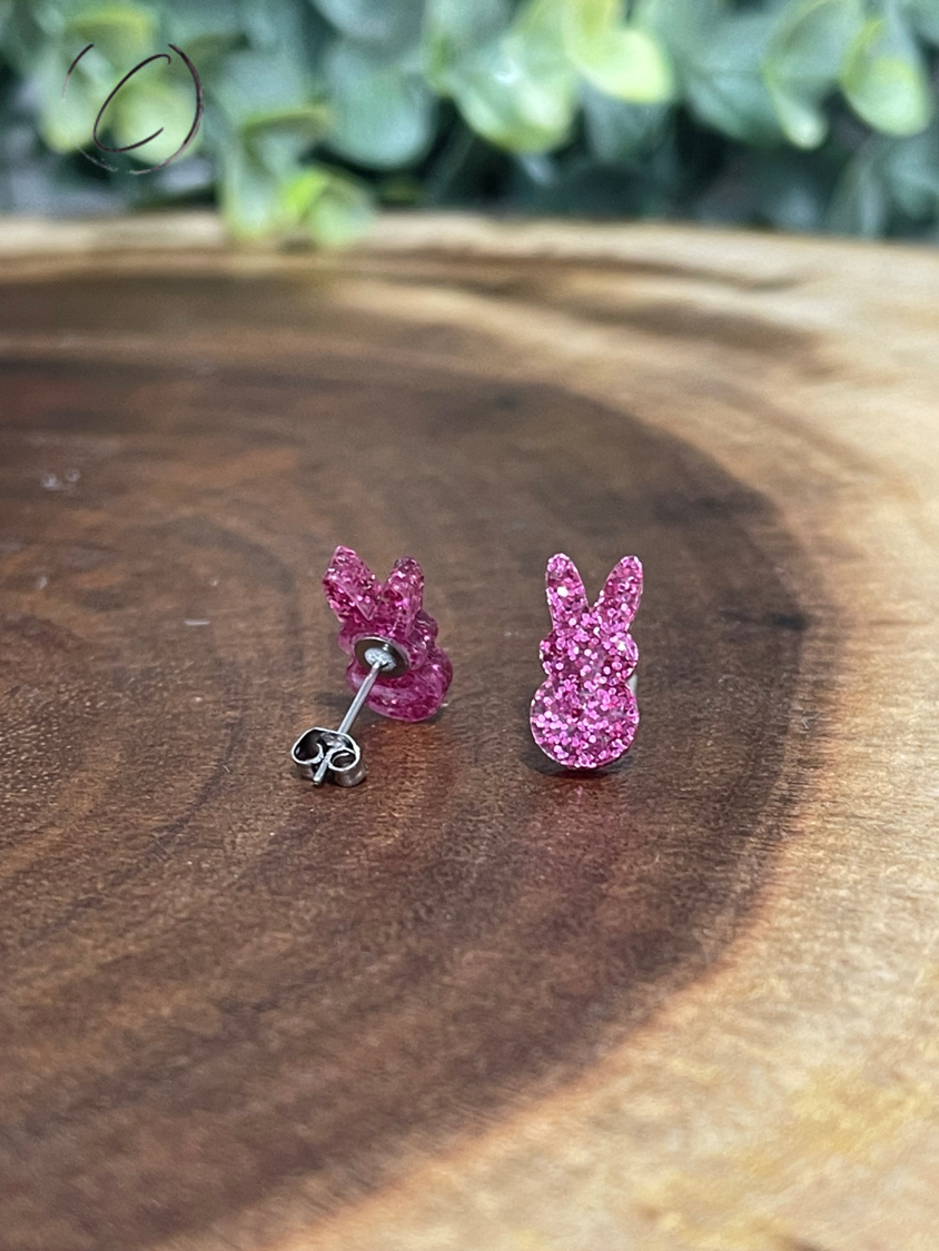 These beauties are made from acrylic and are on hypoallergenic stainless steel posts. They are ~14mm in size. Great for sensitive ears!