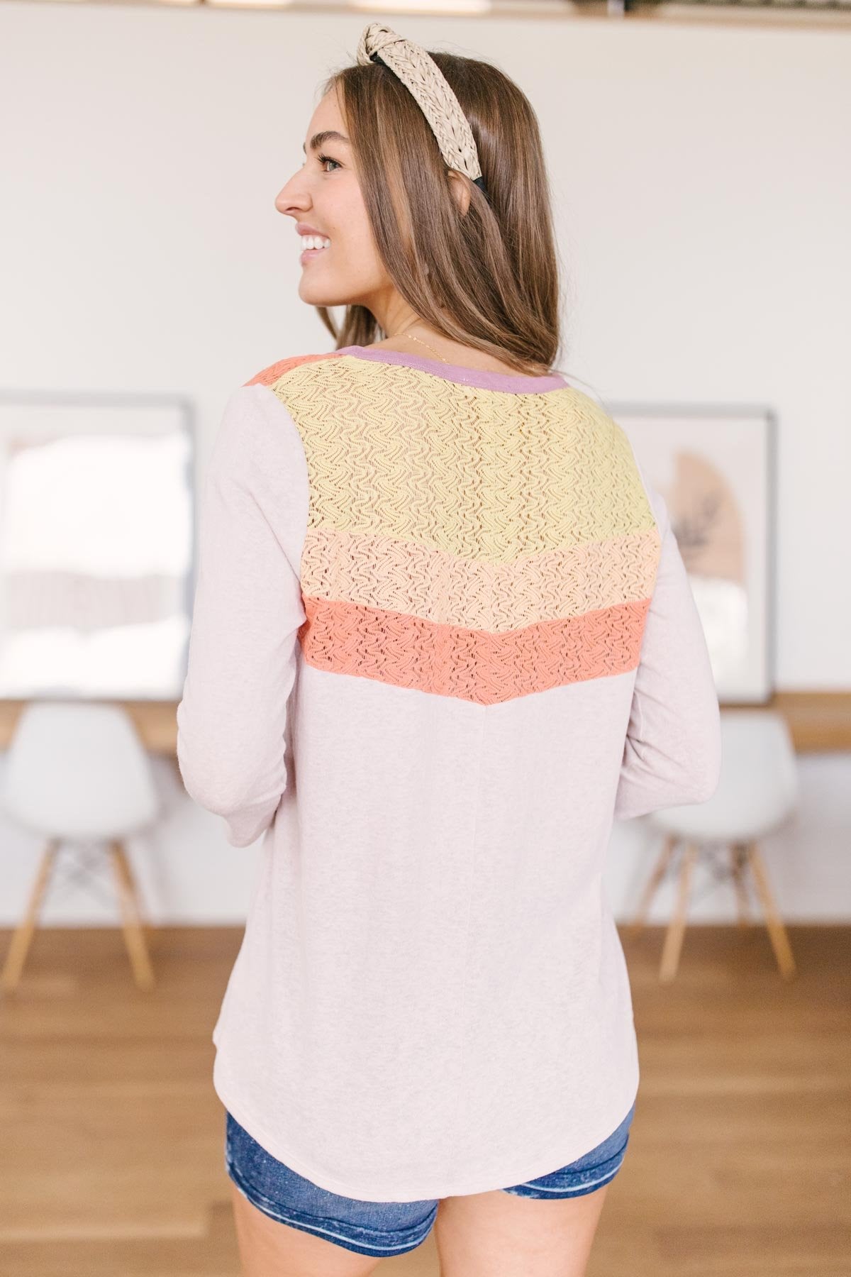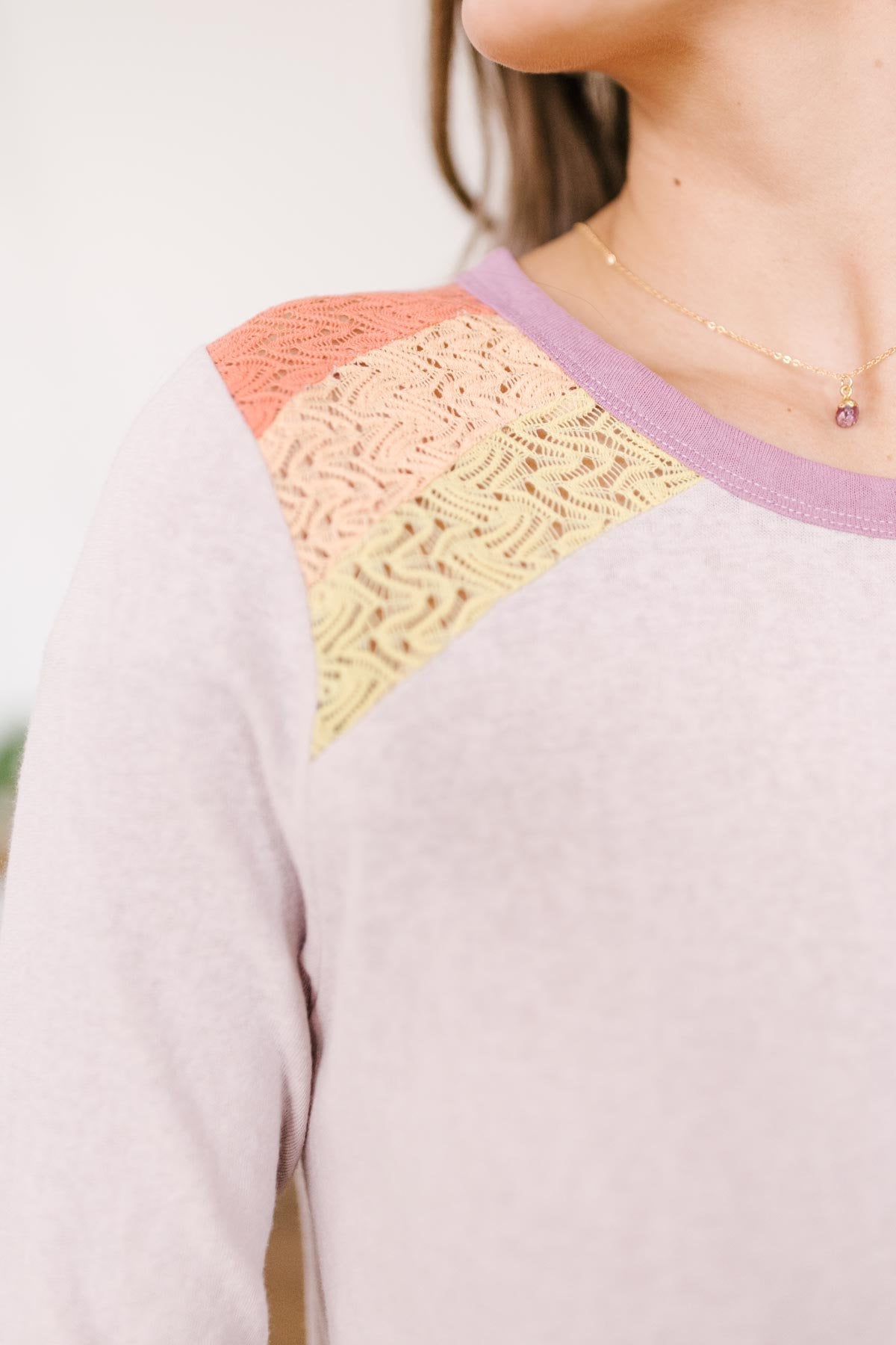 Look no further, we have the perfect playful top for you. Featuring a cast of your favorite features and bright colors, this lightweight piece highlights a colorful lace shoulder detail and quarter-length sleeves perfect for every season.